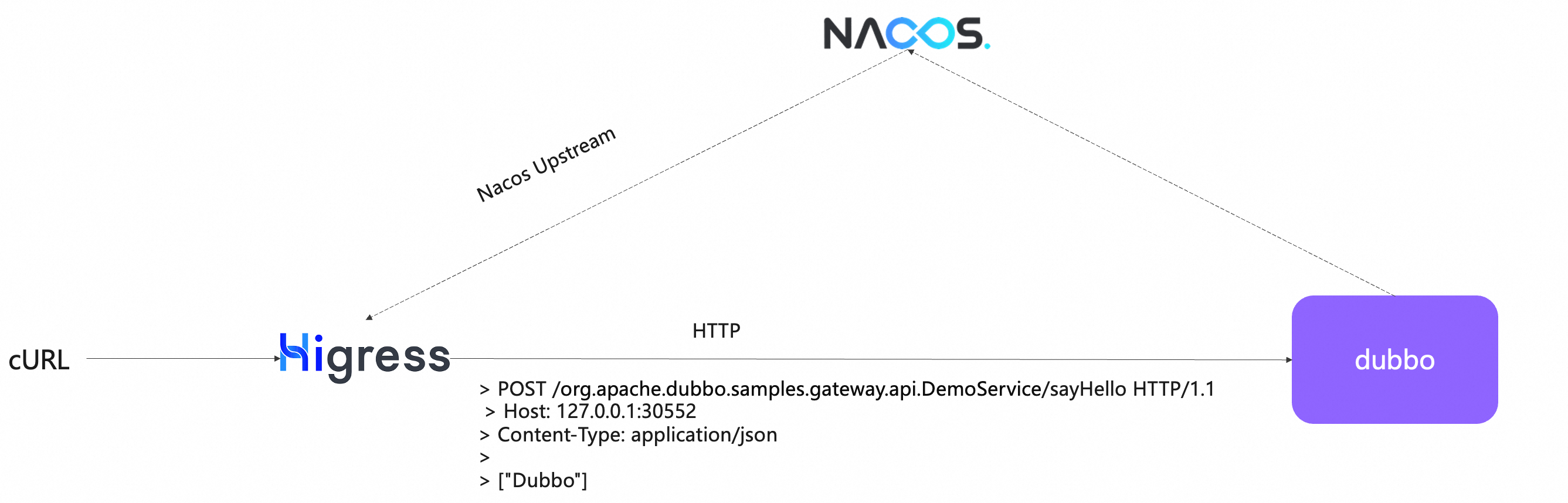 以下我们以 Higress + Nacos + Dubbo 的典型用法为例,详细说明整套机制的工作流程。